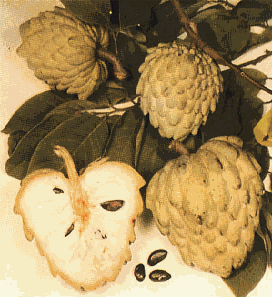 If you are lucky enough, you may find a medium-sized shrub at a specialist grower or garden centre, or your local Butterfly House may have a clearout - otherwise it is a case of planning well ahead and growing plants yourself from seed. Seed is very easy to obtain, either from reputable seed suppliers or from fruits bought from your local supermarket. Just leave the fruit to shrivel and dry out before removing the seeds for best results. The bad news is that you've got to be really keen to grow the plants - Custard Apple takes years to grow outside the tropics! Seeds take anything from 3 weeks to 3 months to germinate (even when fresh) and the seedling tree will often grow to no more than 20 cm high and then stay at that size for a year before putting on more growth. Soil conditions? - Well, I have seen various Annona species growing on sand in West Africa, and we grow it in the tropical house on a magnesian limestone based soil, so I would suggest that any well-drained soil that is not acidic will suffice. Seeds grow at the same rate in standard compost, sand or vermiculite.